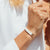 Our LOVESNAP band is bright white and has a beautifully plated Rose Gold closure. The white band has our signature debossed LOVESNAP logo. It comes with 5 rubber bands in different shades. Enjoy this unique elegant bracelet and your newfound positivity positivity.